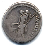 After 47/46 BC monetales in Rome also included Venus on their coinage (RRC 463/1, 463/3, 463/5, 463/6, 468/1, 468/2). An example are the coins of Mn. Cordius Rufus, who struck coins at Rome in 46 BC. A large proportion of his coinage focuses on Venus, particularly Venus Victrix (RRC 463/5, RRC 463/6) and Venus Genetrix. One particular issue (RRC 463/1) shows Venus with cupid perched on her shoulder. This image might be taken from a statue placed in the temple of Venus Genetrix. The temple was completed in 46 BC, the year that the coin was issued. Venus only acquired the epithet Genetrix or 'mother' under Caesar.