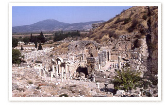 3. A history of Ephesus from coins: the Greek state3.4 Alexander and his successors at EphesusAlexander the Great ( link ) became king of Macedon in 336, and almost immediately set out to conquer the Persian Empire. He took Ephesus without a fight. Alexander did not put his portrait directly on the coins he issued, but the young Herakles that does appear on the obverse of his silver coins certainly has features that resemble other portraits of Alexander. He had good relations with Ephesus, and offered to rebuild the Temple of Artemis, which had burnt down on the day of his birth; he was politely refused. ![]() The Commercial Agora ( tetragonos agora ) of the